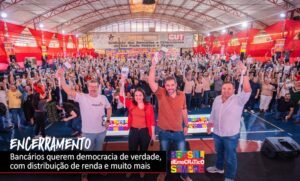 Mané Gabeira também destacou a importância dos Comitês Populares de Luta e encerrou sua fala pontuando as contribuições que a categoria bancária pode dar ao Governo Lula, sobretudo com os bancos públicos (BNDES, Caixa e Banco do Brasil). “Viva a unidade da categoria bancária, que lutou bravamente nesses seis anos de fascismo e ajudou a garantir a volta da democracia brasileira e de um governo popular!”, concluiu.