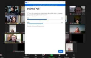 Durante a plenária foi realizada uma enquete com a seguinte pergunta: “Você viu, vivenciou ou ouviu relatos de pressão para a migração, por parte do Banco?”. O resultado apontou para 55% SIM e 45% NÃO. A grande maioria dos quase 300 participantes da plenária participou do levantamento.