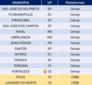 • As plataformas serão implantadas em pequenas e médias cidades, de três regiões do país;