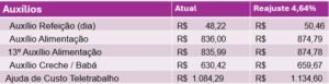 – Aumento de 4,64% na 13ª cesta alimentação e adiantamento da mesma para 1º de outubro.
