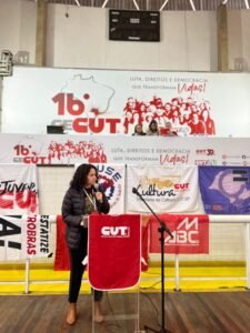 “Saímos de um golpe, dado para retirar direitos previdenciários e trabalhistas, para enfraquecer o serviço público, para entregar as empresas públicas e as nossas riquezas. E a gente saiu deste golpe buscando a unidade com forças progressistas, que defendiam a democracia. A CUT está completando 40 anos. A CUT nasceu para dirigir a classe trabalhadora, e não para dirigir um segmento apenas. A CUT tem de fazer a articulação, sim. A CUT criou a Frente Brasil Popular, criou a Frente Brasil Sem Medo, está se relacionando com vários segmentos da sociedade”, disse Juvandia. “A gente precisa ter unidade na classe trabalhadora, e isso significa articulação com as centrais sindicais, com os movimentos sociais, com os movimentos populares e com as forças democráticas da sociedade”, completou a dirigente.