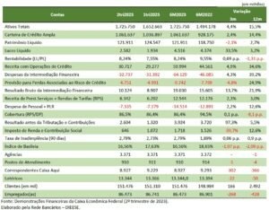 A taxa de inadimplência para atrasos superiores a 90 dias foi de 2,79%, com aumento de 0,06 p.p. na comparação com o 1º trimestre e de 0,9 p.p. em relação ao 1º semestre de 2022. Segundo o balanço da Caixa, em relevante medida, esse crescimento foi consequência de evento com cliente específico ocorrido na carteira de saneamento e infraestrutura. Sem esse acontecimento, o índice teria sido de 2,46%.