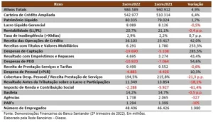 A receita com prestação de serviços mais a renda das tarifas bancárias reduziu 0,6% em 12 meses, e ficou em R$ 9,5 bilhões. As despesas de pessoal mais PLR cresceram 10,3% no ano, somando R$ 4,9 bilhões. Assim, em junho de 2022, a cobertura dessas despesas pelas receitas secundárias do banco foi de 194,5%.