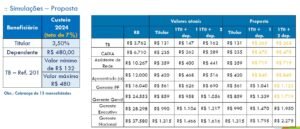 A proposta mantém o percentual de contribuição dos titulares de 3,5% sobre a remuneração base, com valor fixo de R$ 480 por dependente. Atendendo a uma reivindicação da representação dos empregados, a Caixa reduziu o teto de 10%, previsto na proposta anterior, para 7% da remuneração.