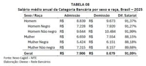 A análise do Dieese revelou ainda a manutenção de assimetrias de gênero, etária, racial e salarial no setor bancário, portanto: