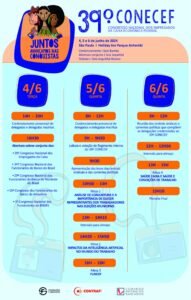 Acompanhe o site e as redes sociais da Contraf-CUT, das federações, de seu sindicato, da Fenae e das Apcefs para mais informações sobre o 39º Conecef.