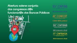 A Contraf-CUT vai transmitir, ao vivo, a abertura solene conjunta do 40º Congresso Nacional dos Empregados da Caixa; do 35º Congresso Nacional dos Funcionários do Banco do Brasil; do 30º Congresso Nacional dos Funcionários do Banco do Nordeste do Brasil; e 17º Congresso dos Funcionários do Banco da Amazônia.